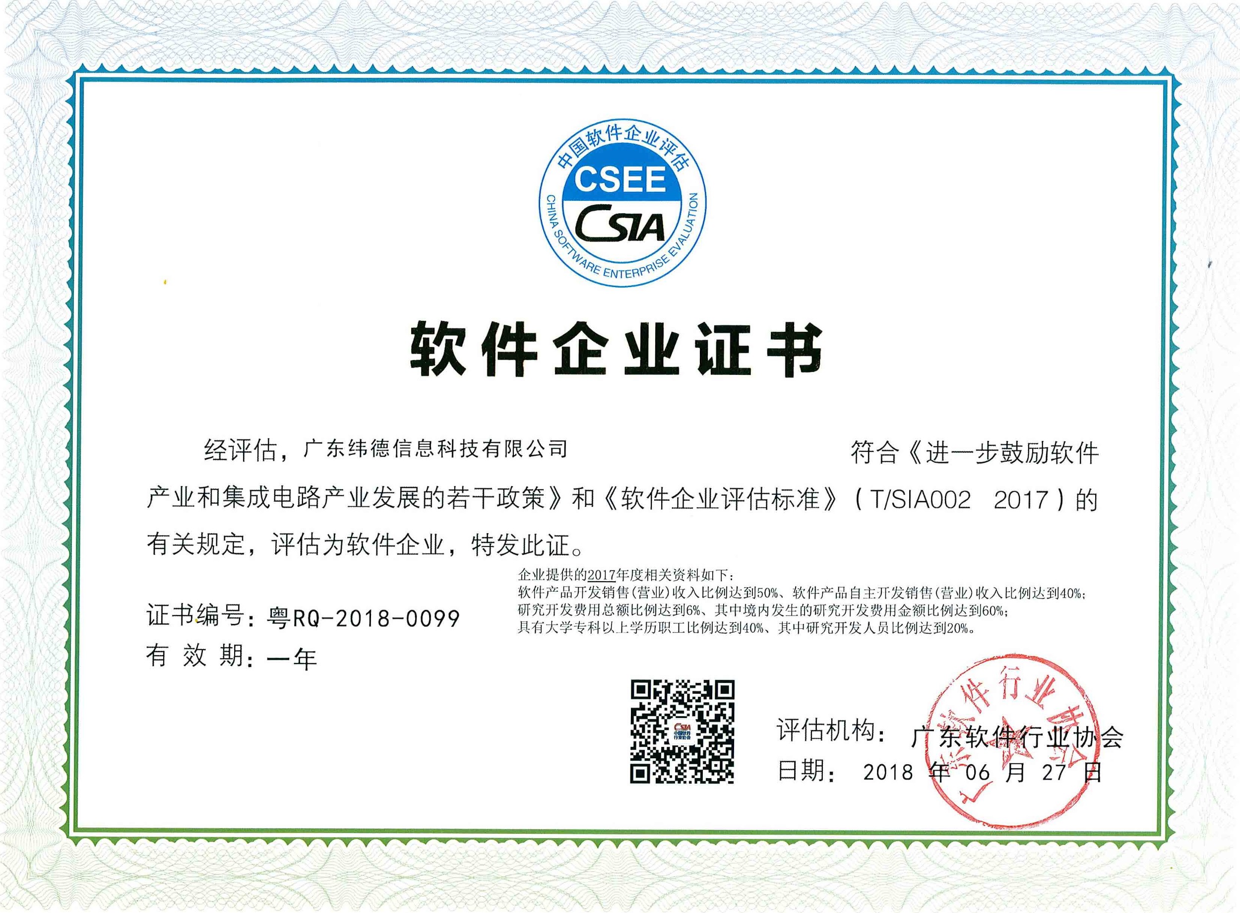 【喜讯】热烈庆祝广东纬德荣获“软件企业”认证!