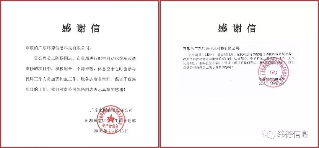 广东纬德一直以“每一个产品,我们都力求完美;每一次服务,我们都竭尽所能”为宗旨,专注于电力行业安全通信产品研发,在国家大力推动工业网络安全建设时期,我司承担南方电网大量配网终端设备安防改造工作。截止2018年底,我司在不到两年时间内协助南方电网各地市供电局完成配网终端改造传输加密整体覆盖率达70%,部分地市甚至达到100%。这是一项肩负信任又无比艰巨的任务。在提升通信安全的同时,我司利用技术优势为客户提升通信设备在线率,使原来许多未达标供电局的在线率迅速得以提升,达到标准要求,如在2018年9月份河源供电局东源分局配电终端加密改造过程中,将在线率由原来的79%提升至97%,得到客户的一致好评。